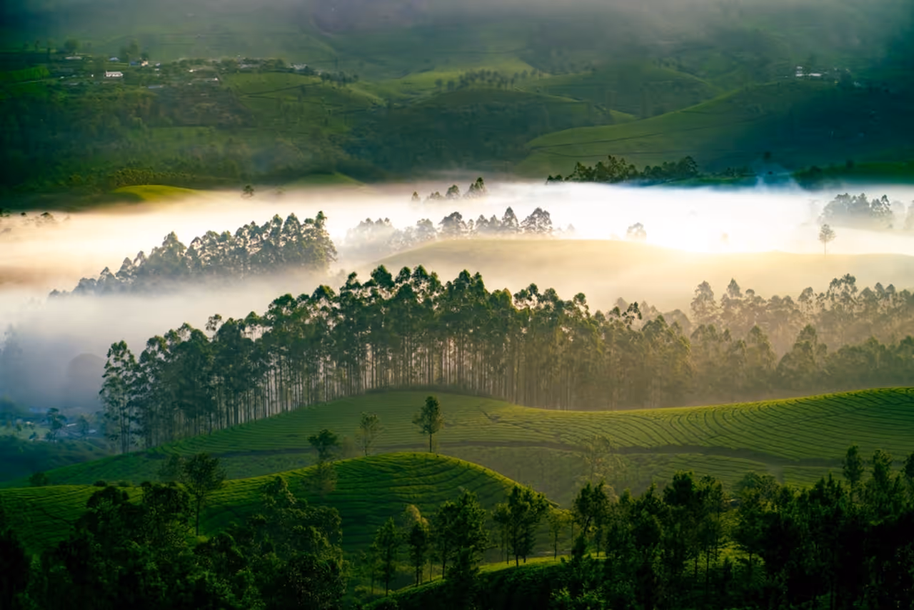 Rolling tea plantations and mist-covered hills make Munnar a dreamy escape. Its cool climate and scenic viewpoints attract nature lovers year-round.