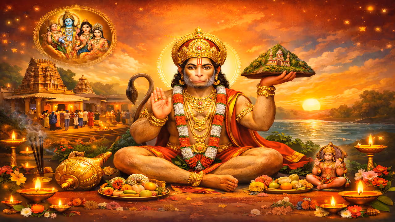 A simple yet powerful mantra for this day is "Om Hanumate Namah." Chanting it 108 or 1008 times is believed to boost courage, remove fear, reduce debt, and weaken enemies' ill intentions. Reciting the Sundara Kandam or Hanuman Chalisa is also very beneficial.