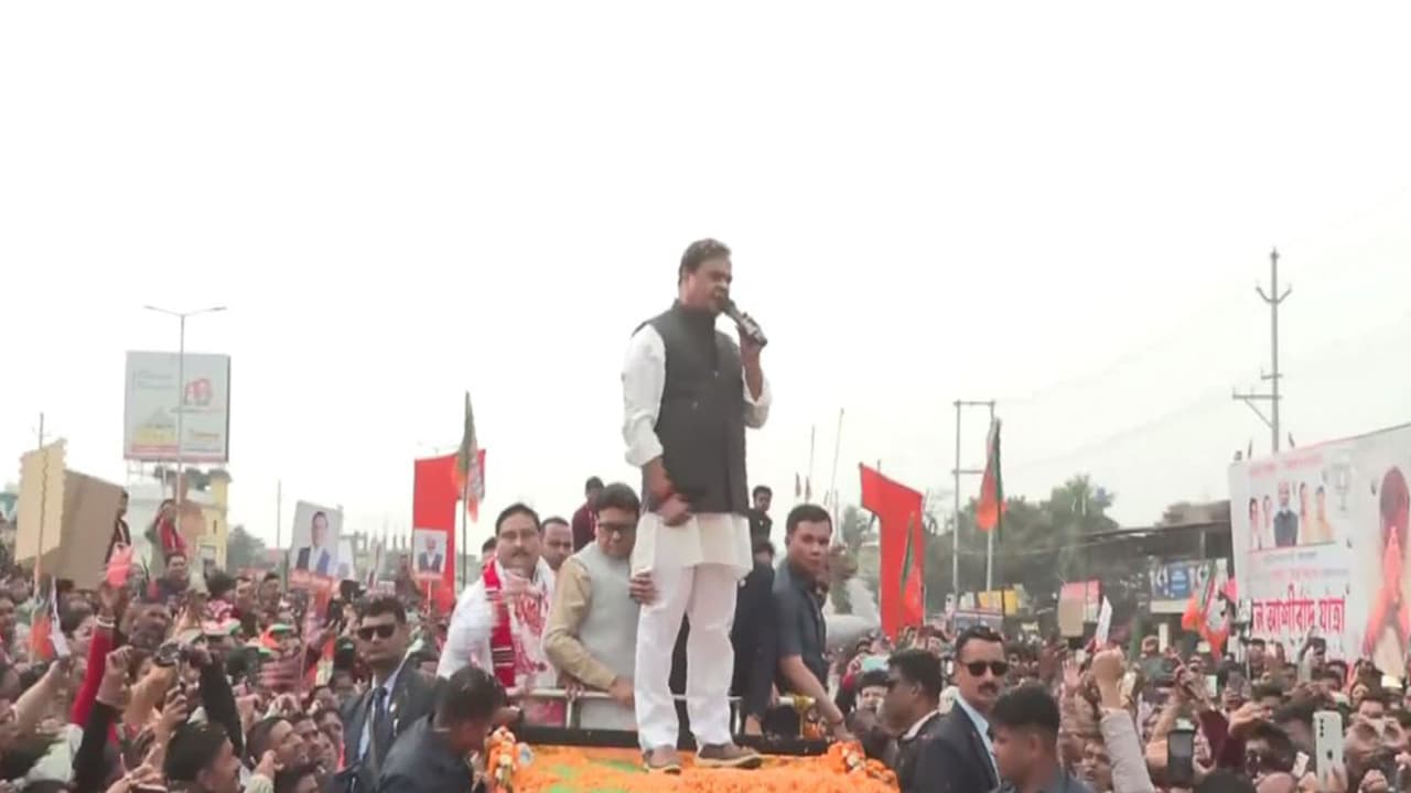Earlier during the third day of the Bharatiya Janata Party's Jan Ashirwad Yatra in the Gohpur area of Assam, CM Sarma greeted people as the campaign continued to receive massive public support ahead of the upcoming assembly elections. Thousands gathered to welcome the leadership during the Yatra, offering floral tributes and vocal support throughout the route.