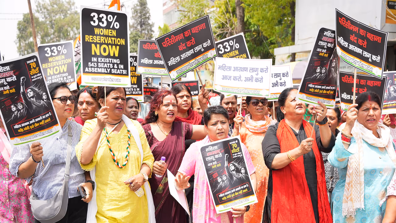 The Uttarakhand Mahila Congress protested in Dehradun, demanding 33% women's reservation. They marched to the Assembly but were stopped by police, leading to scuffles and detentions. CM Pushkar Singh Dhami later addressed the issue in a special session.