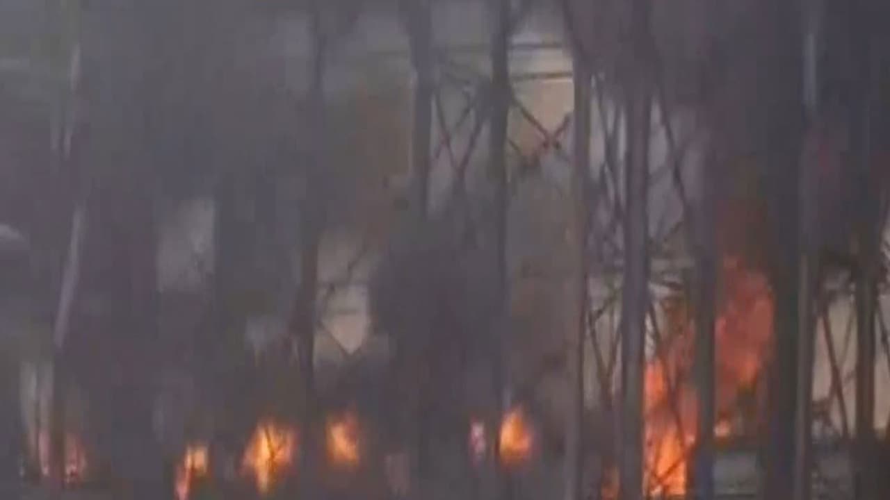 A massive fire erupted at a sugar factory in Havinal village in Karnataka's Vijayapura district on Wednesday evening. No casualties have been reported so far. Fire tenders rushed to the spot, and relief operations are currently underway.