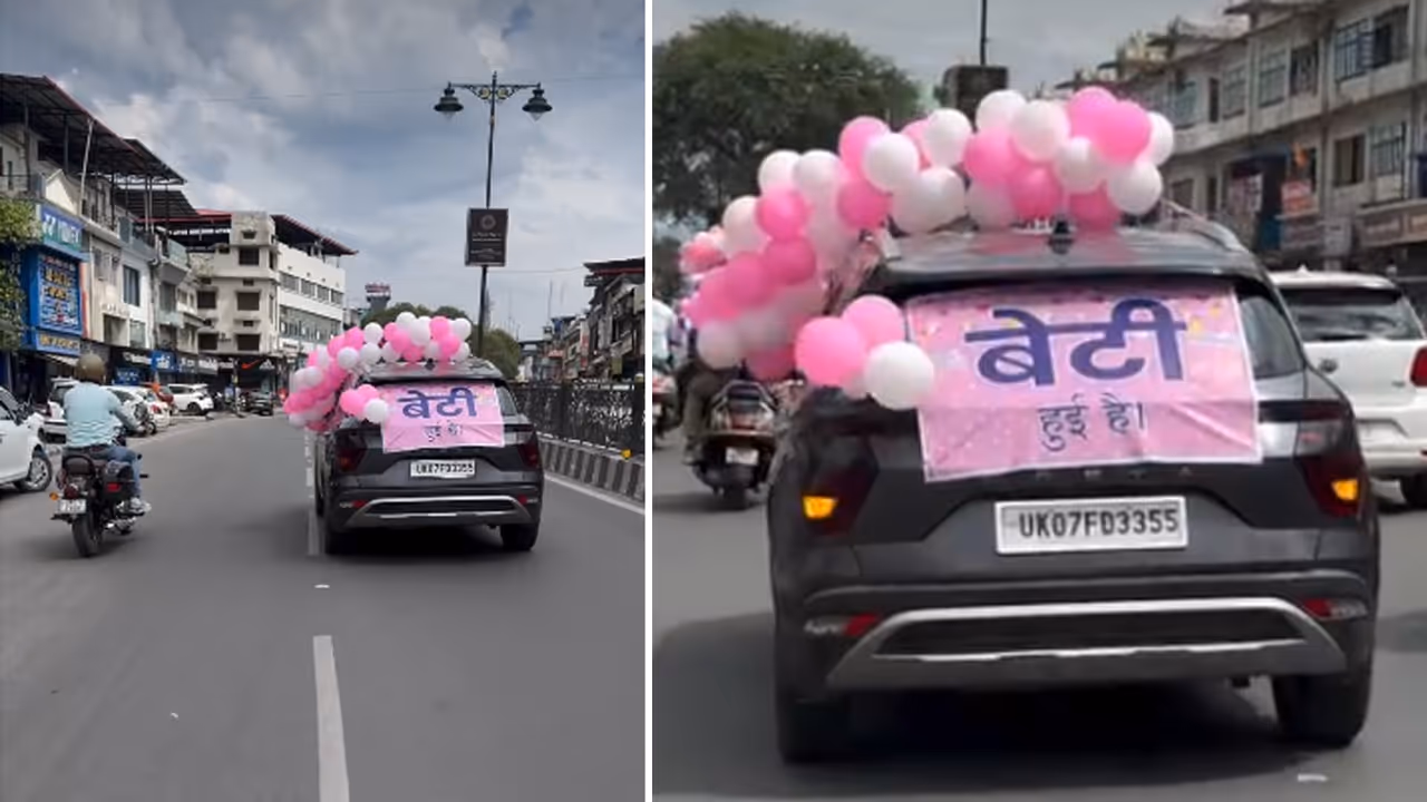 A family in Dehradun celebrated their newborn daughter's birth with a unique public gesture. Their cars, decorated with pink balloons and a "Beti hui hai" sign, went viral online, drawing widespread praise for the heartwarming and powerful message.