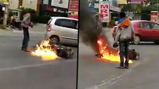 The fire brigade had to be called to contain the fire and the bike was moved out. The incident had led to severe traffic jam for a while.