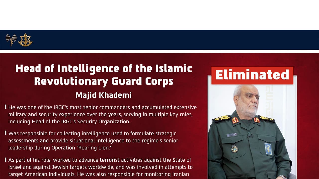 As per the IAF, Khademi was one of the most central commanders of the Revolutionary Guards and had accumulated years of military and security experience. The post noted that he was appointed to his role following the elimination of Mohammad Khotami in Operation "With a Lion Cub." In the framework of his role, he acted to gather intelligence for compiling an intelligence picture for the regime's senior echelons during Operation "Roar of the Lion", the post said.